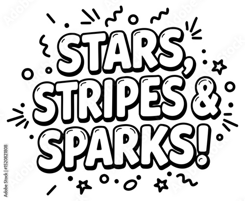 Fototapeta premium Stars. stripes and sparks graphic design with no people or location. Bold. stylized lettering against a blank background. Graphic design for print media or online use.