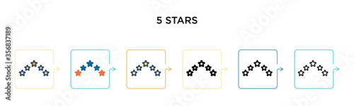 Fototapeta premium 5 stars vector icon in 6 different modern styles. Black, two colored 5 stars icons designed in filled, outline, line and stroke style. Vector illustration can be used for web, mobile, ui