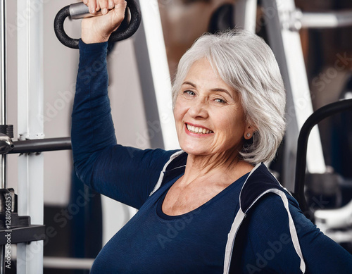 © Monika Janiak-Klicha, Fototapeta premium Starsza pani ćwiczy na siłowni zajęcia dla seniorów