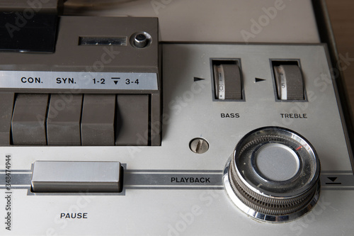 © Fernando, Obraz premium start of old tape recorder, play, pause, rewind, man playing