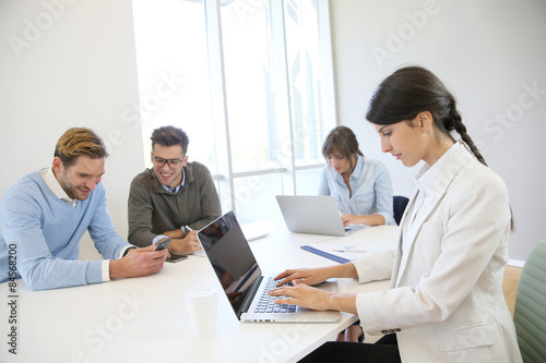 © goodluz, Obraz premium Start-up businesspeople sharing working space
