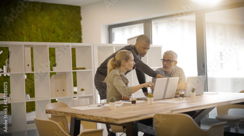 © goodluz, Obraz premium start-up in a team of three people working on a project
