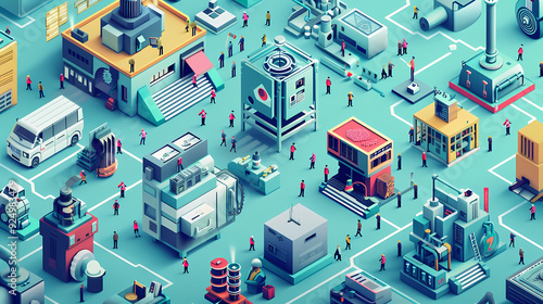 © Akharadat, Fototapeta premium Startup business isometric line vector image