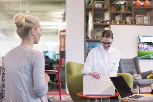 © .shock, Obraz premium Startup Business Team At A Meeting at modern office building