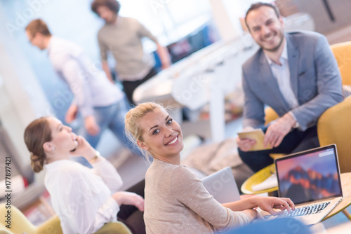 © .shock, Obraz premium Startup Business Team At A Meeting at modern office building