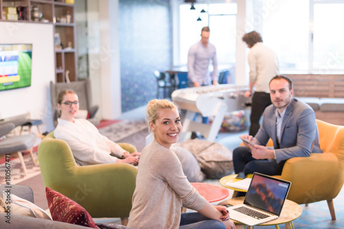 © .shock, Obraz premium Startup Business Team At A Meeting at modern office building