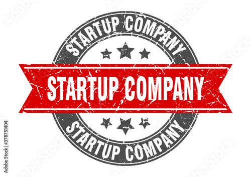 Obraz premium startup company round stamp with ribbon. label sign