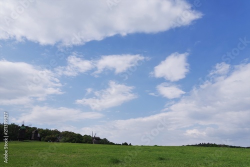 © kunetsSCG, Fototapeta premium stary drewniany młyn w polu