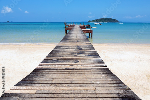 Obraz premium Stary drewniany pomost na egzotycznej plaży wyspie, Tajlandia