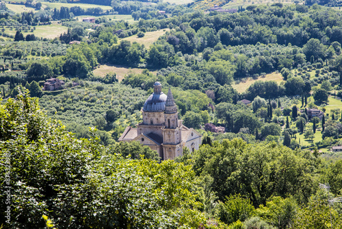 Fototapeta premium Stary kościół na tle toskańskich pól