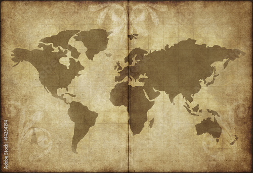 © clearviewstock, Fototapeta premium stary pergamin mapy świata