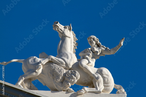 © Robert Keenan, Obraz premium State capitol sculpture woman horse buffalo