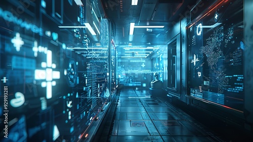 Fototapeta premium State of the art network security operations center equipped with data analytics and global monitor, cybersecurity,
