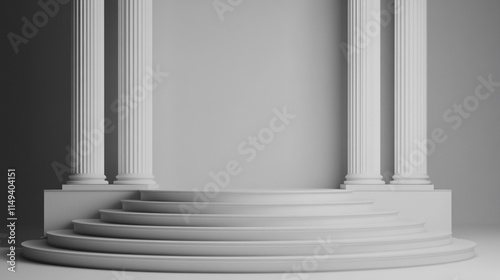Fototapeta premium Stately white columns and stairs in a minimalistic architectural setting.