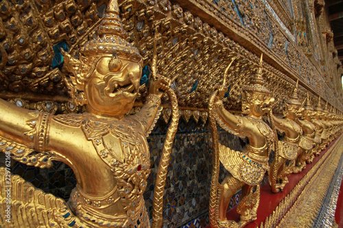 © bayazed, Fototapeta premium Statue and external decoration in Wat Phra Kaew temple complex, Royal Palace, Bangkok, Thailand