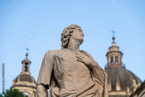 Fototapeta premium Statue in Front of SantAgata Cathedral Domes Catania