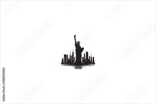 © Rad, Fototapeta premium statue liberty cartoon silhouette with a simple, understated design set against a white background