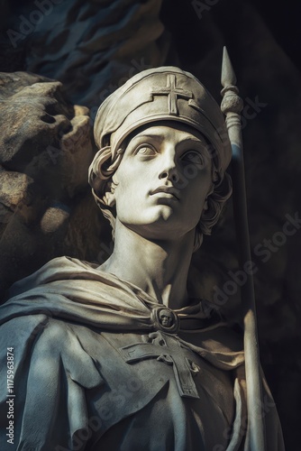 © Evon J, Obraz premium Statue of a historical warrior in detailed medieval armor