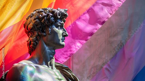 © ciaoaleandro, Fototapeta premium statue of a person with pride flag at background equality concept