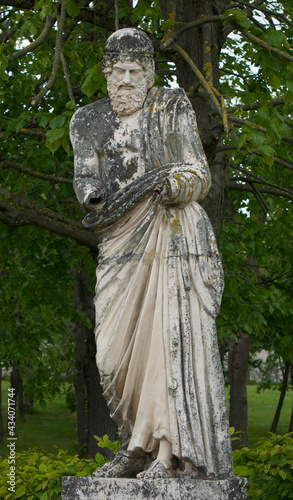 © plizet, Obraz premium Statue of an old, bearded man resembling a greek philosopher with broken arms