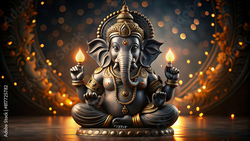 Fototapeta premium statue of buddha god Ganesh with epic light