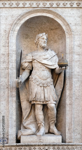 Fototapeta premium Statue of Charles the Great on the facade of Chiesa di San Luigi dei Francesi - Church of St Louis of the French, Rome, Italy