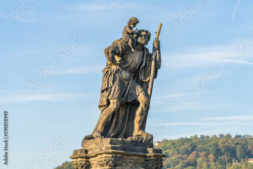Naklejka premium Statue of Child Christus at the shoulder of saint Christopher, Charles Bridge, Prague