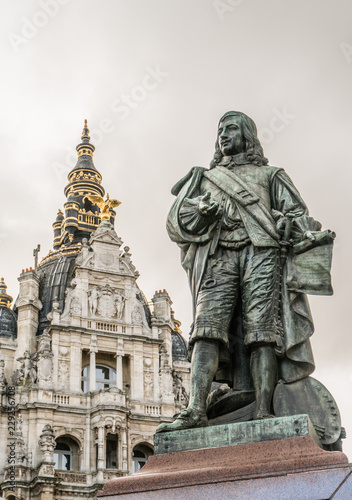Fototapeta premium Statue of Flemish painter David Teniers the Younger against one