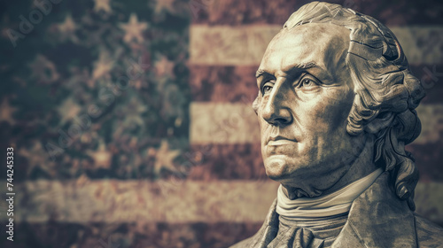 © Neuroshock, Fototapeta premium Statue of George Washington with American flag in the background