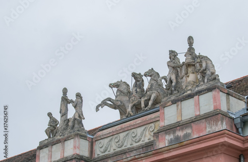 © Daniel, Obraz premium statue of horses on building roof