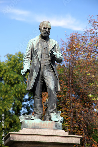 © Cenk, Fototapeta premium Statue of Josif Pancic at Studentski Park (Academic Park) in Belgrade, Serbia. Belgrade is largest cities of Southeastern Europe.