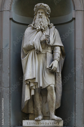 Fototapeta premium Statue of Leonardo Da Vinci outdoor the Uffizi museum, famous touristic...