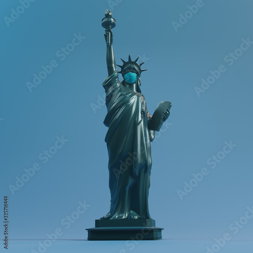 Fototapeta premium Statue of liberty wear surgery mask . Save USA from Coronavirus Covid 19. 3d...