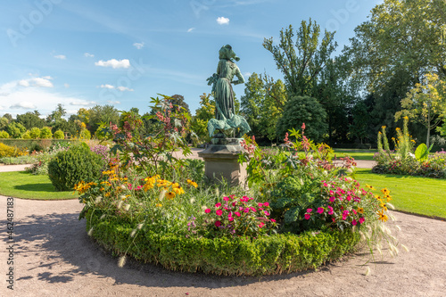 © bios48, Fototapeta premium Statue of 'Lison with geese' in the park of the orangery in Strasbourg.