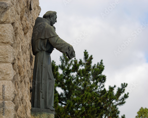 Naklejka premium Statue of Saint Anthony of Padua above the entrance of the church of Saint...