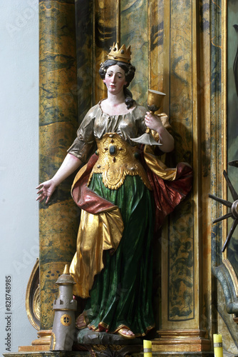 © zatletic, Fototapeta premium Statue of Saint Barbara on the Saint Mary altar in the church of Saint Leonard of Noblac in Kotari
