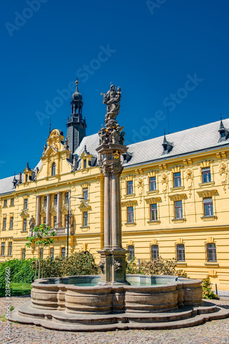 © neurobite, Fototapeta premium Statue of Saint Joseph with a child on top of the column of fountain at Charles Square, New Town Hall, Prague, Czech Republic, details, closeup