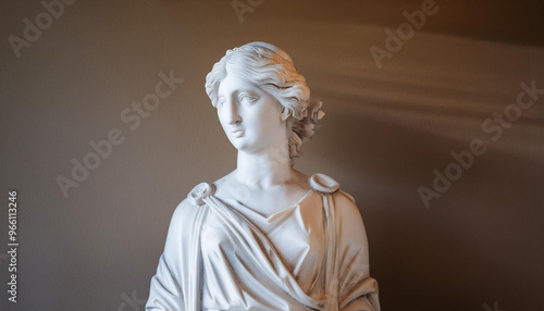 © SolaruS, Naklejka premium Statue of Woman Standing in a Room and Copy Space