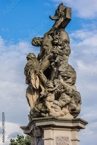 Fototapeta premium Statue on Charles Bridge (Karluv most, 1357). Prague, Czech Rep.