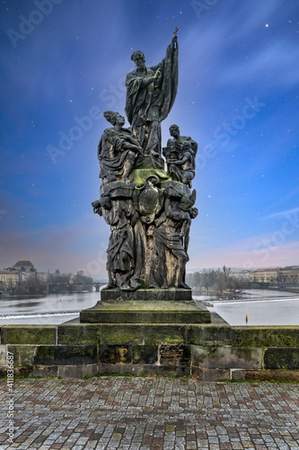© vaclav, Obraz premium Statue on the famous Charles bridge in Prague, Czech republic