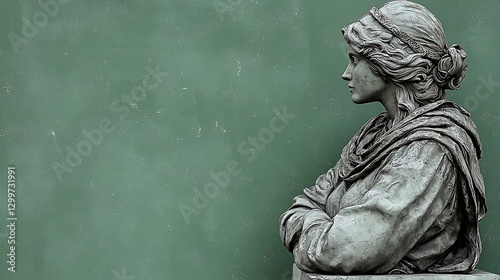 Naklejka premium Statue Profile Stone Woman on Podium, Green Wall