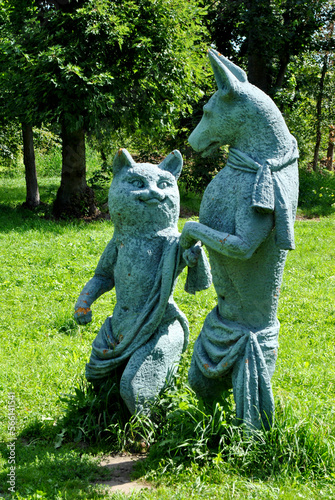 © Dmytro, Fototapeta premium Statue to the cat and a fox