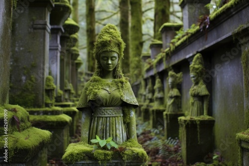 Obraz premium statues among moss-covered gravestones