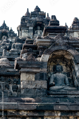 Fototapeta premium Statues and Stupas of the Borobudur Temple, West Java, Indonesia (750AD)
