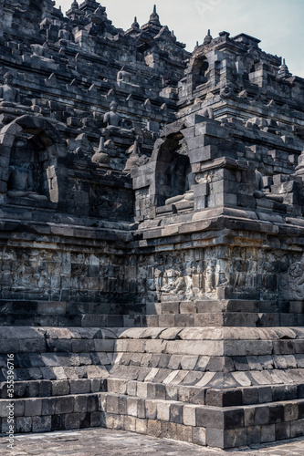 Naklejka premium Statues and Stupas of the Borobudur Temple, West Java, Indonesia (750AD)