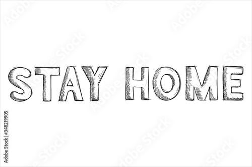 Fototapeta premium Stay home. Black and white hand drawn sketch