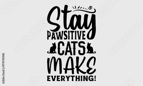 Naklejka premium Stay Pawsitive Cats Make Everything!-cat t shirts design, Calligraphy t shirt...