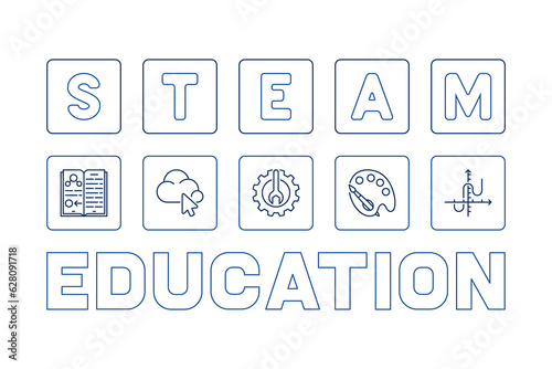 Fototapeta premium STEAM Education line horizontal banner - Science concept linear illustration