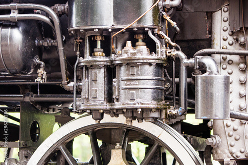 © Kathleen, Fototapeta premium steam engine train wheel and engine mechanics