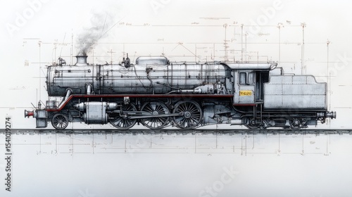 © Ruhaizat, Obraz premium Steam Locomotive Technical Illustration with Annotations